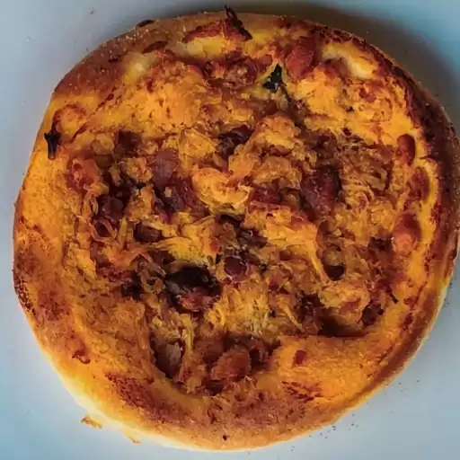 350g de batata Frita, bacon, queijo cheddar, cebola caramelizada, molho da casa.